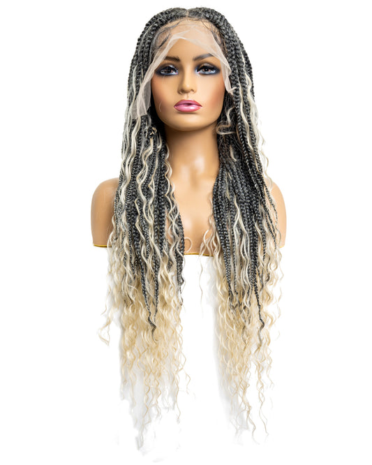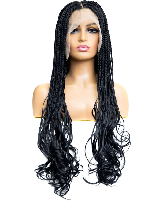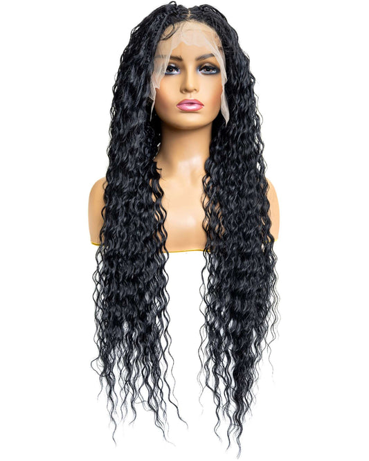 Knotless Micro Bohemian Water Wave Braid 26" Full Lace Wig - Natural & Realistic